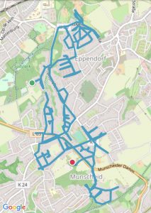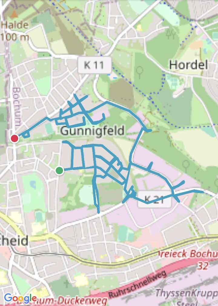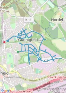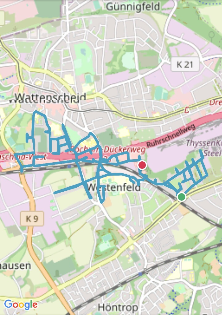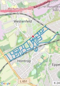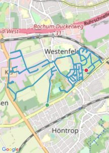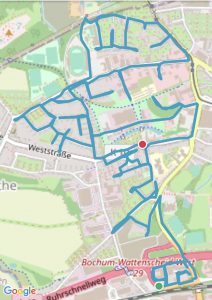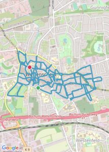 Bochum-Wattenscheid 276 km 317 Straßen, 6 Stadtteile, 32:27:00 Stunden, 1924 Höhenmeter Höntrop: 81,32 km; Westenfeld: 36,55 km; Eppendorf: 43,51 km; Mitte: 66,57 km; Leithe: 28,8 km; Günnigfeld: 16,00 km Höntrop-Nord Höntrop-Süd 1 Höntrop-Süd 2 Höntrop-Eiberg Höntrop-Sevinghausen Westenfeld Süd Westenfeld Nord Mitte-Rathaus Mitte-Stadtgarten Mitte-Heide Mitte-Südfeldmark Leithe-Krayer Straße Leithe-Holland Günnigfeld Eppendorf-Munscheid Eppendorf #1 Höntrop-Nord #2 Höntrop-Süd 1 #3 Höntrop-Süd 2 #4 Höntrop-Eiberg #5 Höntrop-Sevinghausen #6 Westenfeld-Süd #7 Westenfeld-Nord #8 Mitte-Rathaus #9 Mitte-Stadtgarten #10 Mitte-Heide #11 Mitte-Südfeldmark #12 Leithe-Krayerstraße #13 Leithe-Holland #14 Günnigfeld #15 Eppendorf-Munscheid #16 Eppendorf